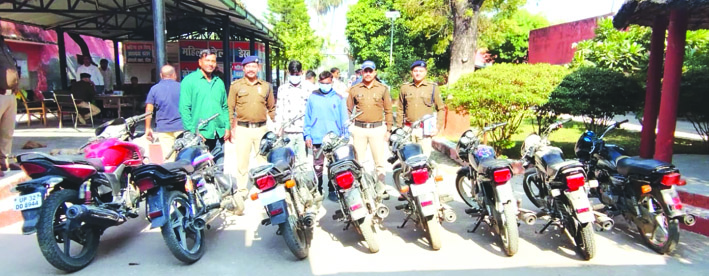 हरिद्वार। बाइक चोरी की घटनाओं से परेशान क्षेत्रवासियों को राहत देते हुए लक्सर कोतवाली पुलिस ने बड़ी कार्रवाई को अंजाम दिया है। पुलिस टीम ने चैकिंग के दौरान दो शातिर वाहन चोरों को दबोचकर उनके कब्जे से 8 चोरी की बाइक बरामद की हैं। दोनों आरोपियों की गिरफ्तारी और बरामदगी का खुलासा लक्सर कोतवाली में आयोजित प्रेस कॉन्फ्रेंस के दौरान एसपी देहात शेखर चंद्र सुयाल ने किया।