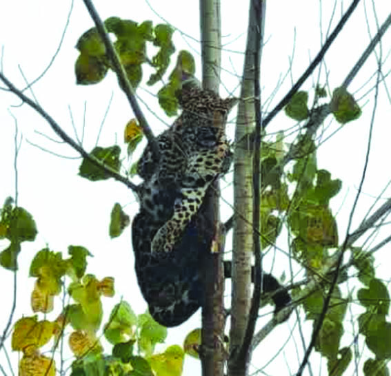 जानकारी के मुताबिक शुक्रवार दोपहर को एक गुलदार जंगल से निकलकर रणसुरा गांव से सटे खेतों में पहुंच गया। बताया जा रहा है कि कुत्ते के शिकार की तलाश में गुलदार खेतों में आया था। गुलदार को खेतों में देखते ही ग्रामीणों में दहशत मच गई। गुलदार, कुत्ते का शिकार तो नहीं कर पाया, लेकिन छलांग लगाते हुए एक पेड़ पर चढ़ गया। एक पेड़ से दूसरे पेड़ पर छलांग लगाते हुए वो पॉपुलर के पेड़ की टहनियों के बीच फंस गया। काफी देर तक गुलदार पेड़ की टहनियों के बीच फंसा रहा। उसे देखने के लिए मौके पर ग्रामीणों की भीड़ भी जमा हो गई।